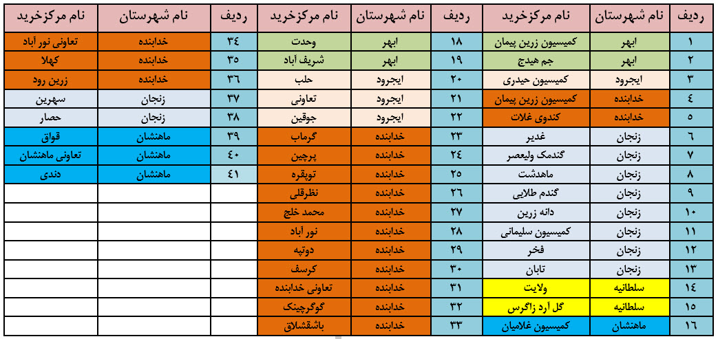 اسامی مراکز خرید تضمینی گندم استان زنجان